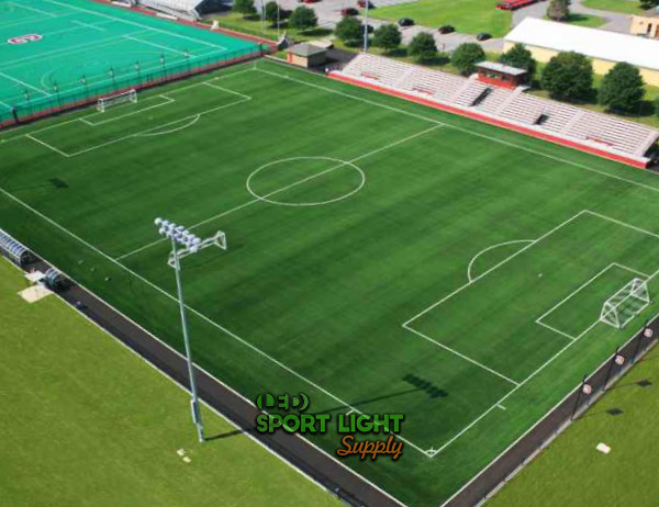 Pole spacing directly affects lighting quality. Poles placed too close together can cause excessive overlap and glare, while poles spaced too far apart create shadows and dark areas. For rectangular fields, poles are commonly spaced 40–60 meters apart, adjusted according to mounting height and beam distribution.