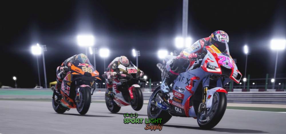MotoGP circuits share similarities with F1 tracks but introduce additional requirements due to the two-wheeled nature of the vehicles. Riders rely heavily on surface texture and grip perception, making it necessary for lighting to reduce harsh reflections, especially in wet conditions. Fixtures must be arranged to provide low-glare, high-contrast lighting from multiple angles, especially in leaning zones where riders are nearly parallel to the ground. LEDs dominate MotoGP lighting schemes because of their tunability, precise targeting, and reduced light spillage, all of which help protect rider focus and safety.